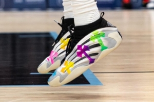 本场比赛,鹈鹕新秀杰里迈亚·费尔斯上脚了一双DIY涂鸦的克罗心主题Harden Vol.9。