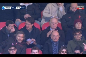 体育资讯12月29日讯 慢镜头报道,前尤文图斯主席安德烈亚·阿涅利在圣西罗的看台上观看了AC米兰对阵维罗纳的比赛。