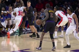 GIF-詹姆斯被拽胳膊没啥大碍