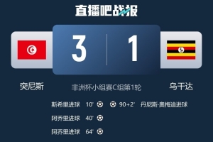 体育资讯12月24日讯 非洲杯小组赛首轮比赛,突尼斯3-1击败乌干达。
