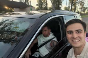 在结束了2025赛季和一系列活动后,梅西已经返回家乡罗萨里奥。昨天有阿根廷球迷在路上偶遇梅西与安东内拉外出,安东内拉开车,梅西坐在副驾的位置,被球迷拦下后他为球迷的球衣签了名。